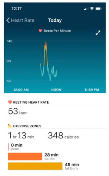 10 months later, in the grips of the COVID ‘lockdown’, I discovered that there would be an online Balletone training – the first one ever! It was an absolutely lovely training by Elizabeth Lenart (Balletone Program Director) and Lauren George (Balletone Master Trainer). Despite never having taken a Balletone class I KNEW I would love it. Balletone is one of the most engaging formats that I have ever taught. I love that it’s accessible to all ages and fitness levels but still a challenging, sweaty, cardio workout. Here’s my own Fitbit heart rate from a Balletone/Blend class. I’m always amazed by the results for my โค๏ธ