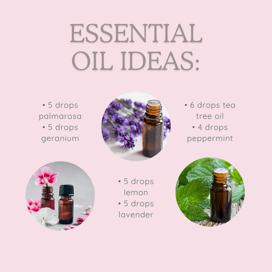 My favourite oil combination right now is geranium and palmarosa – they are beautiful florals that are also antimicrobials that can help fight germs. Geranium is also a very uplifting oil, which is a nice side benefit of cleaning with essential oils!