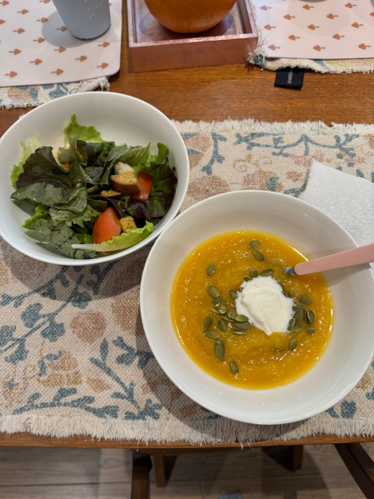 - Squash soup with blue cheese sprinkled on top (more of a me meal – my family refuse to only eat soup!)