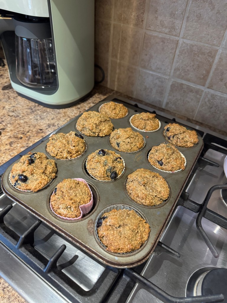 - Blueberry oat bran muffin (recipe here) – I make these every week and love them. They are super filling and keep me from snacking before lunch.